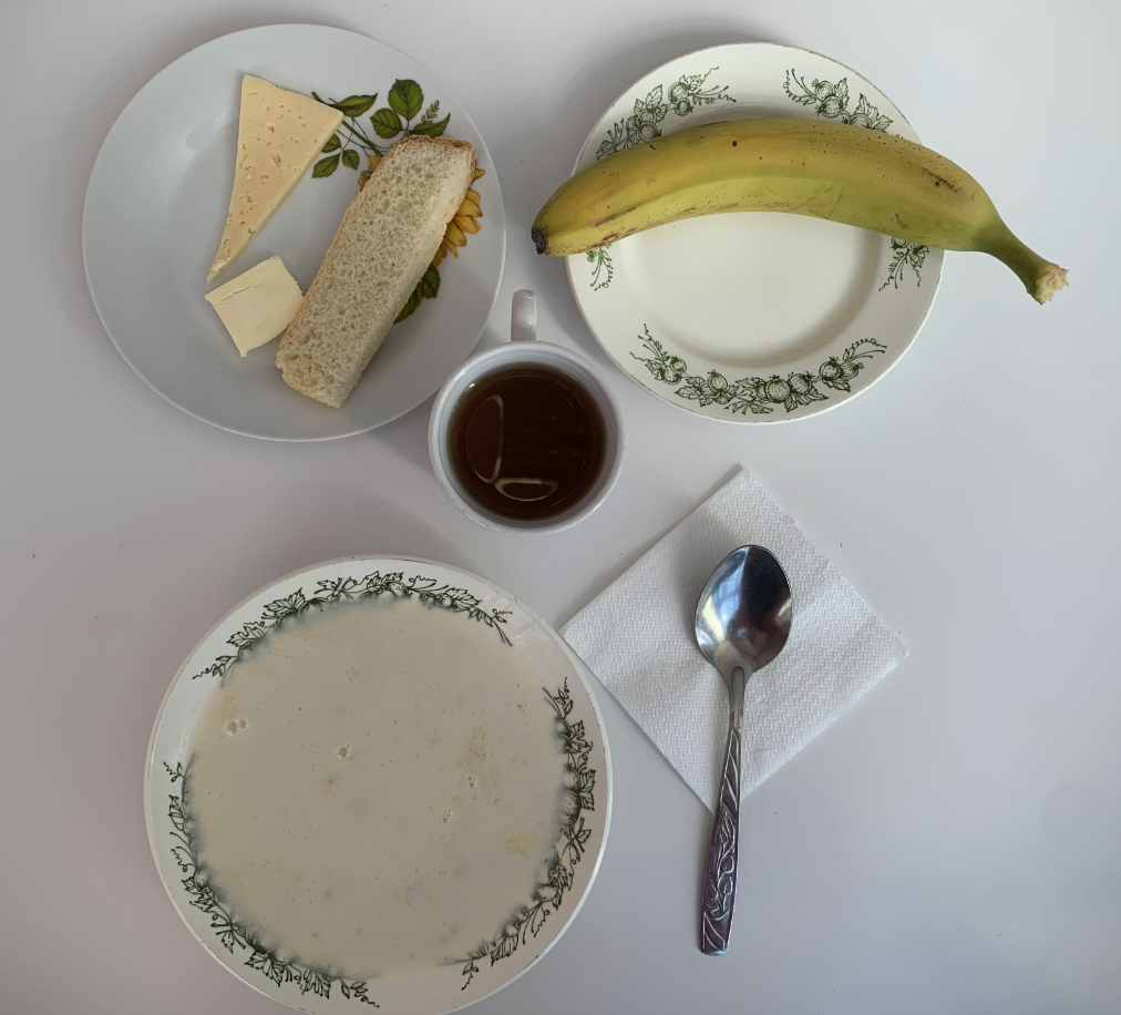 горячее первое и второе блюдо или второе блюдо в зависимости от приёма пищи.